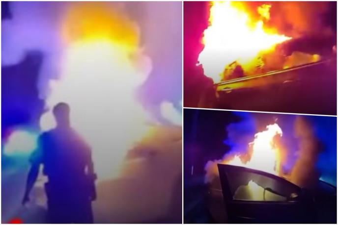 Na snimku se vidi kako policajac Almin Rešidović prilazi vozilu u plamenu i izvlači ženu sa suvozačeve strane dok joj je kosa gorela. Rezidović joj je odmah pružio medicinsku pomoć dok nisu stigli bolničari i preuzeli brigu o njoj.