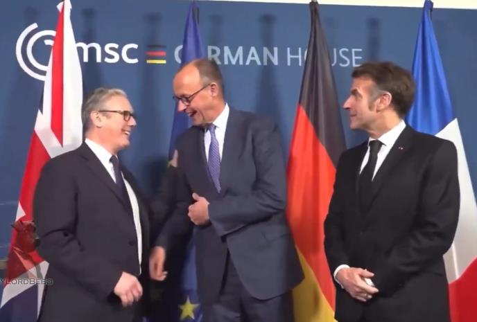 Vodeći evropski trio - Kir Starmer iz Velike Britanije, Fridrih Merc, premijer Nemačke i domaćin, i predsednik Francuske Emanuel Makron, okupili su se na jednoj konferenciji kako bi odgovarali na pitanja i fotografisali se za medije.