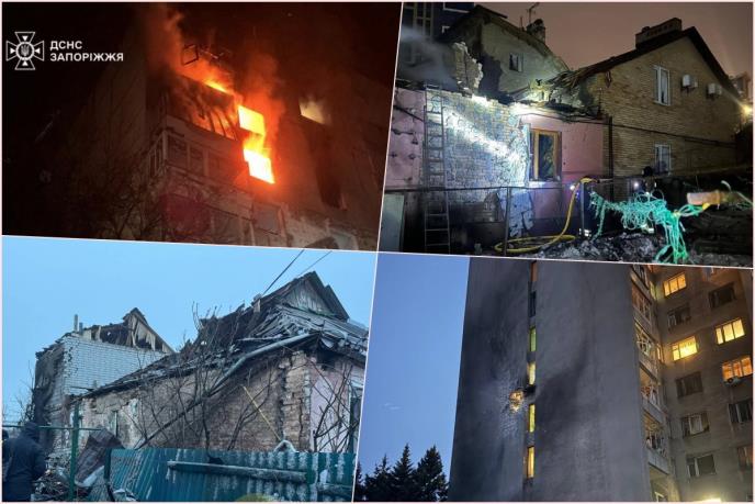 U Zaporožjuje regionalni guverner Ivan Fedorov izjavio da je nekoliko spratova stambene zgrade zahvaćeno požarom, pri čemu je jedna osoba ostala zarobljena unutra. U napadu su oštećeni i tržni centar i privatna kuća. Jedna osoba je poginula, a osam je povređeno, od kojih je jedna hospitalizovana u za sada nepoznatom stanju.