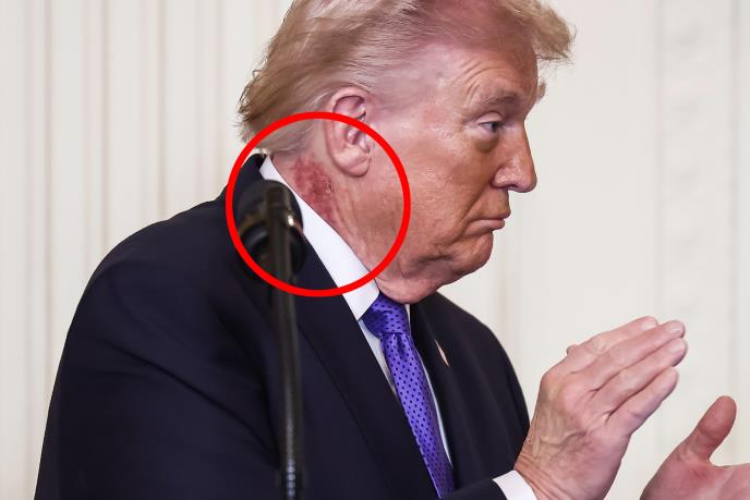 Zaista, fotografije Saula Loeba iz agencije Agence France-Presse prikazuju nešto što izgleda kao istaknuta crvenkasta rana ili krasta ispod njegovog desnog uha, zaklonjena belim okovratnikom košulje.