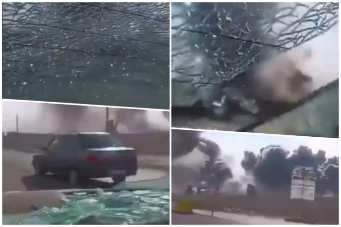 Na internetu se pojavio video snimak koji prikazuje kako se zadnje staklo automobila u pokretu razbija na deliće od udarnog talasa eksplozije tokom raketnog napada na iranski grad Karadž, zapadno od prestonice Teherana.