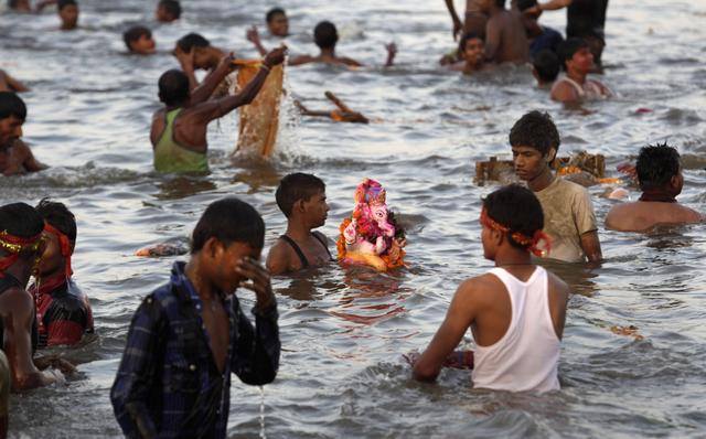 Milioni Hindusa tokom desetodnevnog praznika posvećenog Ganeši postavljaju statue ovog božanstva u privremenim, namenski podignutim građevinama širom Indije i tamo im se mole. Zatim te figure odnose u reke, jezera i okean.