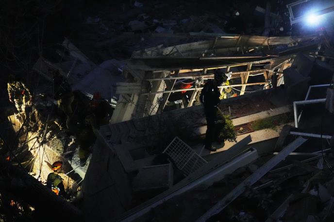 Timovi za spasavanje rade na mestu udara u Haifi, gde je teška iranska balistička raketa pogodila sedmospratnu stambenu zgradu.