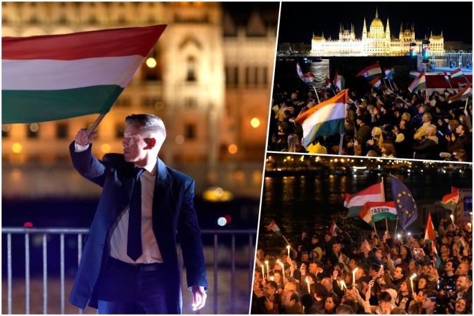 Peter Mađar, budući premijer Mađarske, pozdravio je hiljade svojih pristalica ispred izbornog štaba Tise u srcu mađarske prestonice Budimpešte.