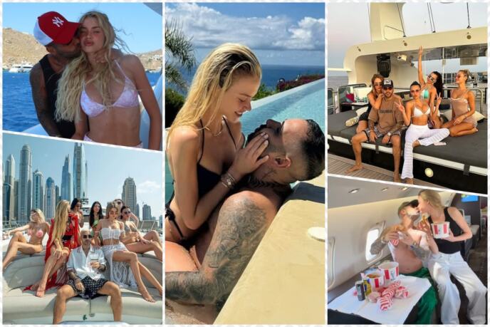 Njegova partnerka je, prema navodima, nosila i Hermes Birkin torbu vrednu oko 25.000 funti, dok su navodno putovali ka Ibici.