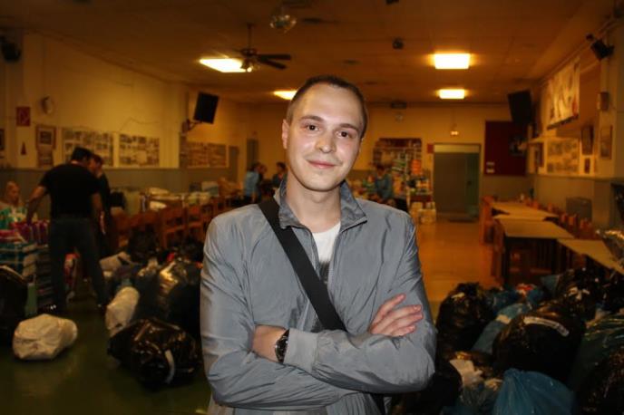 BEČ - Među mnogobrojnim dobrovoljcima u klubu "Jedinstvo" koji su doneli i pakovali humanitarnu pomoć za Srbiju juče se našao i jedan Rus, Nikita Samilin, student iz Sankt Peterburga.