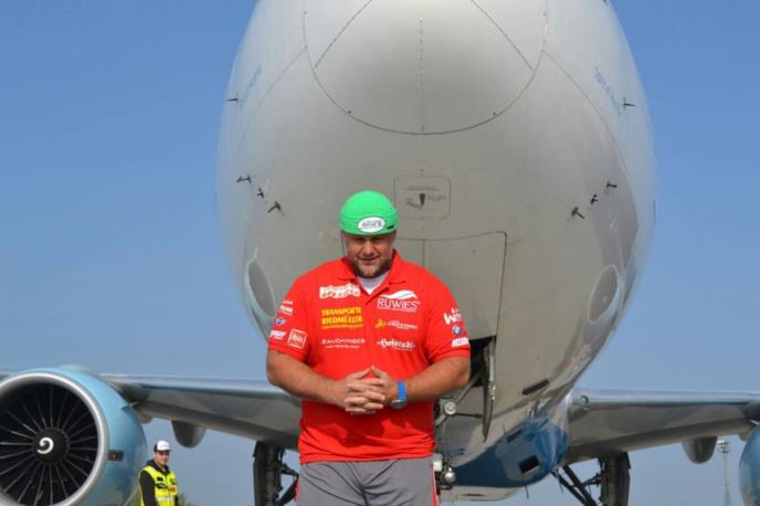 Snagator Franc Milner će u 14 časova na bečkom aerodromu Švehat, koristeći isključivo snagu sopstvenog tela, pokušati iz hangara da izvuče Boing 777 Jumbo