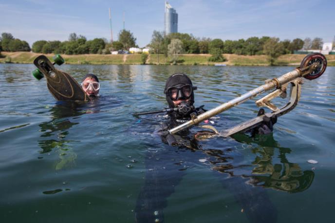 Po završetku 31. Donauinzelfesta, ronioci vadili „blago“ koje je umesto u kontejneru završilo u reci. Izvučeno više od 3500 litara