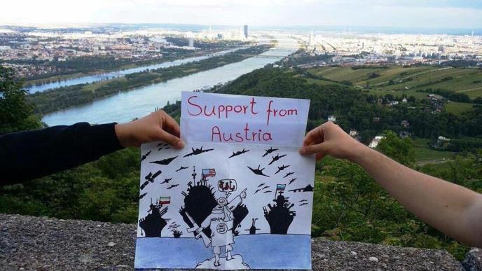 Ove fotke objavljene su pod korisničkim imenom Abu Umar. Na jednoj od fotografija rukom je napisana poruka na engleskom jeziku „Podrška iz Austrije“. Na drugoj piše „Milijarda muslimana za podršku Islamskim državama“. Na njima su iscrtani i islamski ratni simboli.