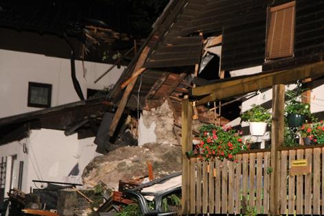U ponedeljak oko ponoći, u mestu Obertraunu, u pokrajini Gornja Austrija, sa jednog brda visokog oko 25 metara, odvalila se ogromna stena i skotrljala na kuću koja se nalazi u podnožju.