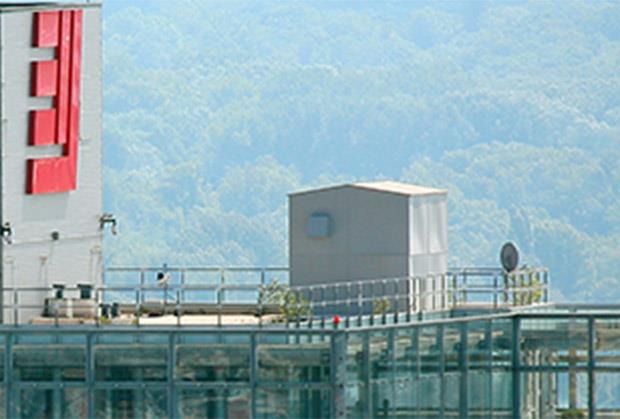 Ova kućica se ne vidi sa zemlje, jer je visoko, a ravni krov je zaštićen ogradom. Kućica na krovu ima oko 15 kvadrata i visoka je nekoliko metara. Okrenuta je prema bečkom centru UN. Ovaj deo krova IZD Towera je opkoljen jakom čeličnom ogradom od ostatka krova i nadzire ga desetak kamera.