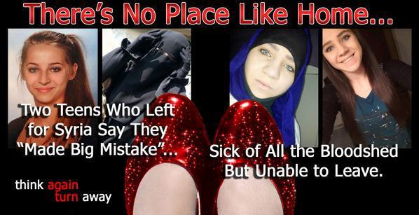 Uz glavni slogan piše i : "Ne postoji bolje mesto od sopstvenog doma", "Dve tinejdžerke koje su se zaputile u Siriju kažu da su napravile veliku grešku" i "Bolesne od velikog krvoprolića, ali u nemogućnosti da sve to napuste".