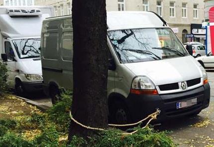 Naime, dnevni list Hojte objavio je danas fotografiju jednog čitaoca reportera na kojoj se može videti kombi bečkih registarskih tablica, privezan za drvo. Vozač je iz sigurnosnih razloga lepo uže provukao kroz branik pa oko drveta, pa u čvor.