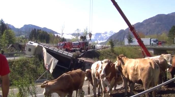 Vozač je, srećom, samo lakše povređen, ali je nekoliko životinja ostalo zarobljeno ispod prikolice. Veliki broj nepovređenih bikova pobegao je iz kamiona i za njima je tragalo oko 60 vatrogasaca i pripadnika spasilačke službe. Šef vatrogasnog doma okruga Gmunden, Štefan Šajndorfer kaže da su u potrazi pomogli i lokalni farmeri.