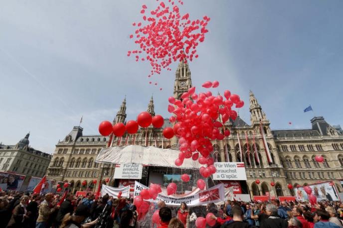 Simpatizeri DHKP-C iz Beča sa svojim obeležjima, kako pokazuju objavljene fotografije, maršisali su sa socijaldemokratama 1.maja kroz centar Beča.