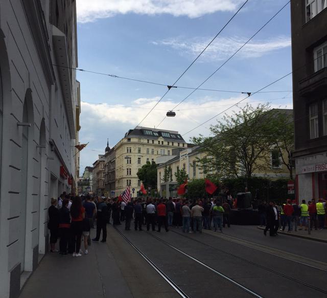 BEČ - Više od 150 Albanaca okupilo se danas poslepodne ispred ambasade Makedonije u Beču, zbog kako su saopštili, "aktuelne situacije u Kumanovu i Tetovu". Demonstranti su nosili albanske i zastave SAD i uzvikivali UČK", "UČK" (OVK).