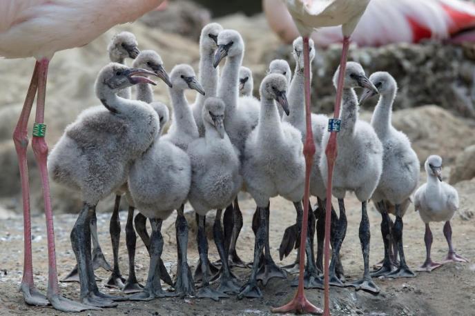 „Trenutno ptići ne liče na svoje roditelje i sive su boje koja ih u prirodi bolje štiti od grabljivica. Za otprilike tri godine njihovo perje poprimiće ružičastu boju kao kod odraslih flamingosa“, objašnjava direktorka zoo-vrta Dagmar Šrater.