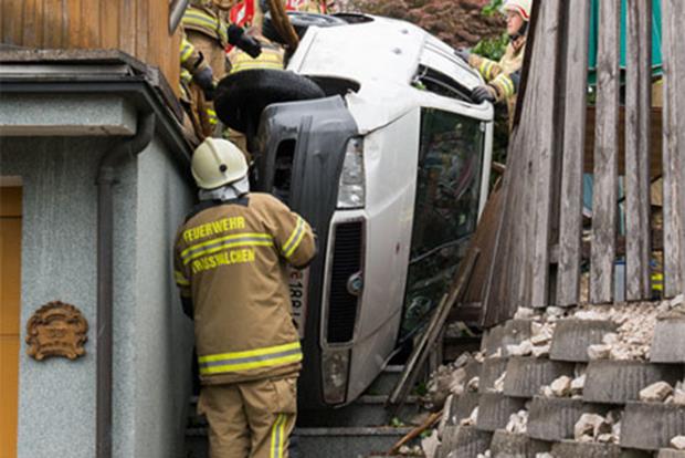 Naime vozač (23) je u subotu oko tri sata ujutro u krivini izgubio kontrolu nad vozilom i izleteo sa opštinskog puta u Štrasvalhenu (Straßwalchen) i završio u dvorište kuće koja je bila kraj druma. On je autom očešao drveće kraj puta, sleteo niz zemljani nasip, prevrnuo se na bok i ostao zaglavljen između zida kuće i bazena.