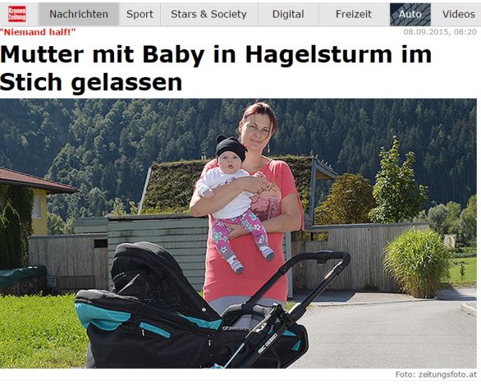 "Kiša je toliko padala, da mi je mobilni ubrzo prestao sa radom, nisam mogla da pozovem pomoć" izjavila je ova majka za bečki Kronen Cajtung.