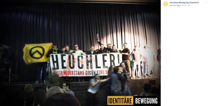 Protest pokreta "Identitere" održan je sinoć, ubrzo nakon što je počela predstava pod nazivom "Molioci", koju su izvodili tražioci azila iz Sirije, Iraka i Avganistana, prenosi AFP. Oko 30 demonstranata, pretežno muškaraca, upalo je na binu mašući zastavama i razvilo veliki transparent sa natpisom "Licemeri! Naš otpor vašem nemoralu".