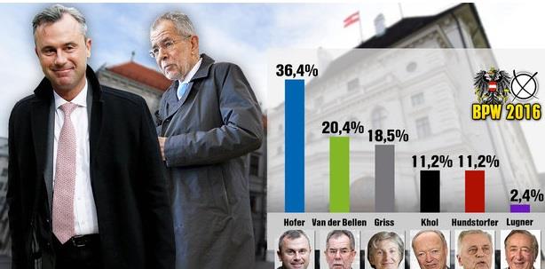 Prema zvaničnim preliminarnim rezultatima, na osnovu 99 odsto prebrojanih glasova, Hofer je osvojio 36,4 odsto glasova.