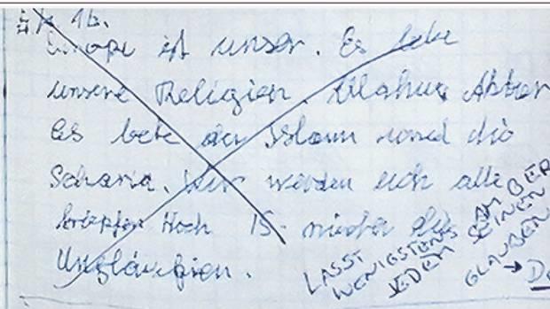 "Živeo islam i šerijat, svima ćemo vam glave odseći“ pisalo je u knjizi, a ispod datum 10. Juni 2016.