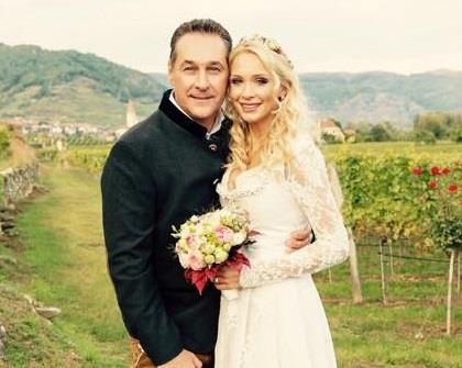 Štrahe (47) je na večanju nosio tradicionalnu austrijsku nošnju, dok je nevesta bila odevena u prelepu belu venčanicu sa čipkom i cvetnim vencem na glavi. Prema informacijama dnevnih novina „Österreich“, Štraheov venčani kum bio je Karl Oksner (K. Ochsner), preduzetnik iz Gornje Austrije i poznati proizvođač toplotnih pumpi.