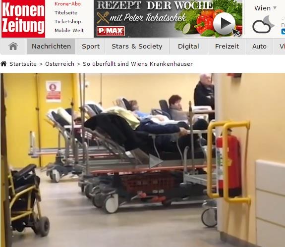 I tako provode sate u prostorijama, dok se u hodnicima odelenja sportske i traumatološke hirurgije može videti kako pacijenata jedu u svojim krevetima . Prema podacima predstavnika Udruženja bolnica (Krankenanstaltenverbund) , nije nikakva tajna da su trenutno njihovi kapaciteti prebukirani. Oni objašnjavaju novonastalu situaciju sezonskom epidemijom gripa, i godišnjim odmorima privatnih lekara. Ipak broj kreveta koji se nalaze po hodnicima zdravstvenih ustanova za sada je ostao tajna.