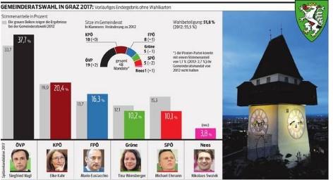ÖVP i Slobodarska partija (FPÖ) su na ovim izborima, koji su u Austriji prvi u ovoj godini, osvojili više glasova nego radnije, dok su Zeleni zabeležili gubitke, a SPÖ, čak istorijski najgori rezultat u Gracu.