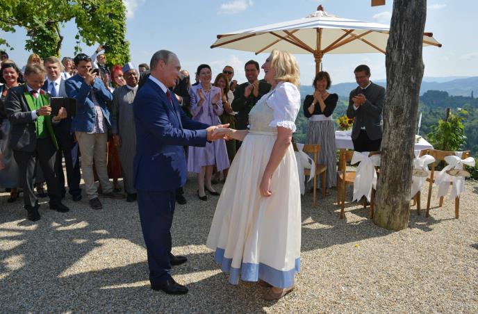Putin je bio glavna zvezda na njenom venčanja na u vinariji na jugu Štajerske, a mladencima je na nemačkom održao zdravicu i potom zaplesao sa mladom.