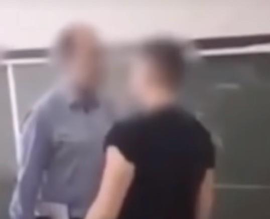 Stvar je eksalirala kada je profesor pljunuo učenika posle čega ovaj nasrće na njega, a snimak se prekida.