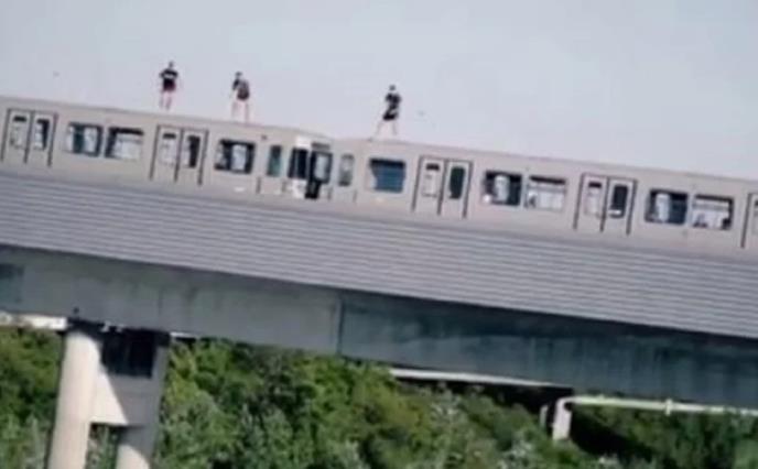 Trojica muškaraca snimljena su kako se bacaju u Dunav s krova voza u pokretu.
