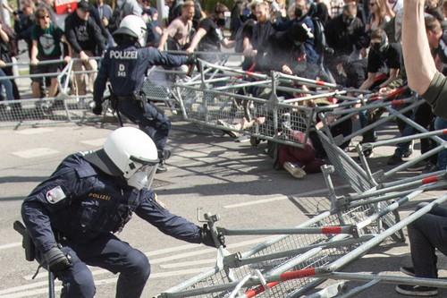 Kada je pokušano probijanje kordona policije kod Landštrase Girtla, došlo je do sukoba sa policijom koja je upotrebila biber sprej, u cilju sprečavanja susreta antikoronaša i antifašista.