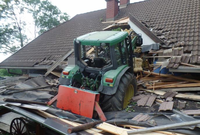 Kako ostali austrijki mediji navode incident se dogodio 2. juna oko 14.45 časova. Naime traktor je najpre probio baštensku ogradu, zatim živu i zastavio se na krovnoj konstrukciji.