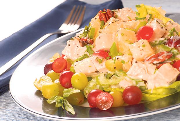 Povrće očistiti, oprati i iseckati ga na sitne komade. Piletinu po želji grilovati ili skuvati i iseckati. Fetu izrendati i sve sastojke zajedno s majonezom i pavlakom sjediniti. Na kraju posoliti i pobiberiti po ukusu pa dodati napola sečeno grožđe i sitno seckani ananas.