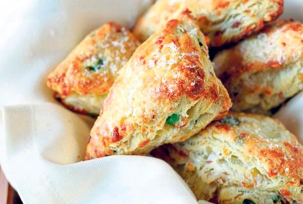 U činiji pomešati maslac i sir. Dodati sitno seckane masline, so, biber, malo bosiljka i prosejano brašno. Sve sastojke sjediniti i uz dodavanje vode umesiti testo. Ostaviti ga da malo odstoji, pa ga razvući na debljinu od 1 cm. Modlom vaditi pogačice i svaku premazati umućenim belancetom. Peći na 220 stepeni oko 25 minuta dok ne porumene.