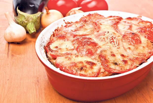 Poslednji treba da bude red paradajza. I njega malo poprskajte preostalim rastopljenim maslacem. Pecite oko 25 minuta na 200 stepeni.