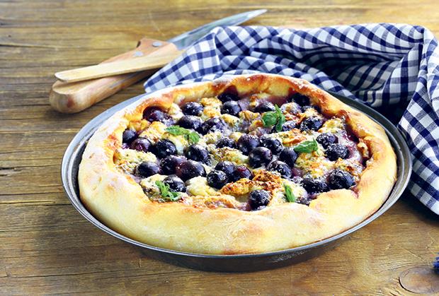Umesite testo od 250 g prosejanog brašna, četiri kašike šećera i malo soli. Dodajte celo jaje, dva žumanca i 60 g putera. Testo dobro umesite, potom ga rastanjite oklagijom i stavite u podmazan pleh. Po testu pospite zrna svežeg grožđa, pospite ih šećerom, pa pitu pecite u rerni. Zasebno umutite čvrst sneg od tri belanca, dodajte jedno žumance i dve kašike šećera sa malo vanilinog šećera, malo brašna, pa zajedno sve dobro zamutite. Ovaj fil sipajte preko testa, vratite pitu u rernu, još malo je zapecite i izvadite. Kad se ohladi, kolač isecite na kocke.