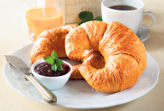 U mlako mleko staviti kvasac, kašičicu šećera i brašna i ostaviti da naraste. Sjediniti jaja, kiselo mleko, ostatak šećera i so. Dodati mleko s nadošlim kvascem i brašno i zamesiti testo. Ostaviti ga da odstoji pola sata. Nakon toga testo podeliti u 16 loptica, pa svaku razvući oklagijom, premazati margarinom i slagati jednu na drugu (dva puta po osam). Poslednje loptice ne premazujte. Razvući oba dela testa skroz tanko i iseći ih na po osam trouglova, pa na svaki staviti kašičicu džema i urolati kroasane. Voditi računa da krajevi budu spojeni kako džem ne bi iscurio napolje. Saviti kroasane u oblik potkovice i peći.