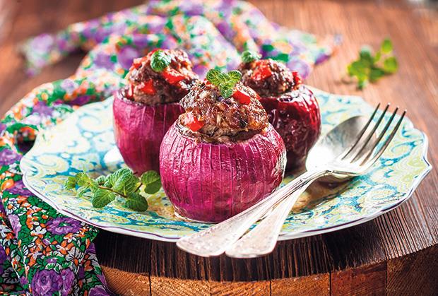 Glavice luka oljuštiti, poređati ih u vatrostalnu posudu, naliti pola čaše vode, pokriti folijom i peći 15 minuta. Mlevenom mesu dodati jaje, kuvan pirinač, pavlaku i začine. Glavice luka izdubiti, ono što je ostalo naseckati i dodati smesi. Dobijenom masom puniti luk, prekriti folijom i peći još 25 minuta.