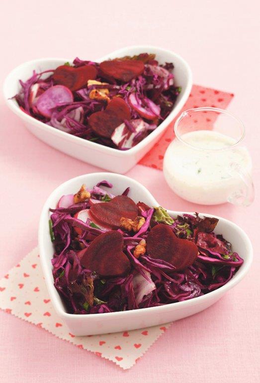 PRIPREMA: Očistiti cvekle i prokuvati ih pet minuta u slanoj kipućoj vodi. Nakon toga dodati kašiku sirćeta i ostaviti da u toj tečnosti odstoji pola dana. Cveklu iseckati na sitne kockice. Mladi kupus narezati, pa ga pomešati s cveklom. Dodati kašiku meda i posuti karijem. Rashlađenu salatu služiti uz jela s mesom ili paste.