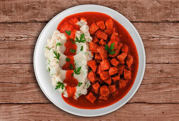 Na maslinovom ulju prodinstati sitno naseckan crni i beli luk i ruzmarin. Doliti vodu, dodati vrganje i tri krompira isečena na kockice, a jedan krompir neka bude ceo. Dodati so i ajvar. Kuvati oko 45 minuta na laganoj vatri, pred kraj kuvanja dodati biber i kašiku sirćeta. Na kraju ceo skuvan krompir izgnječiti viljuškom i dodati ponovo u gulaš.