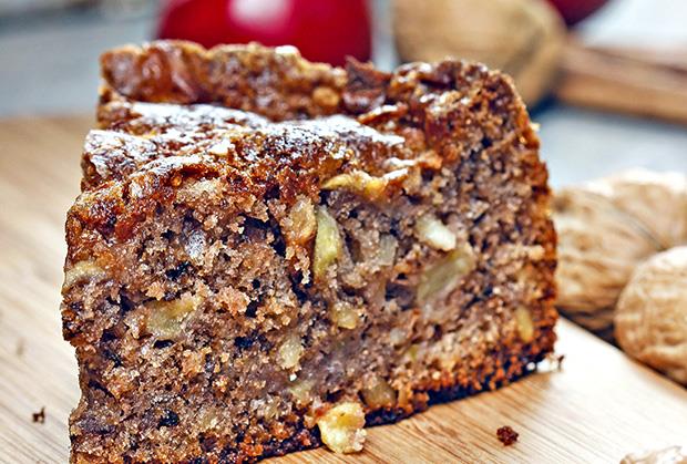 Jaja sa šećerom penasto umutite mikserom, pa dodajte ulje i lagano izmiksajte. Ručno umešajte griz i orahe, nakon toga i izrendane jabuke i po želji grožđice, koje ste prethodno barem sat vremena držali u mleku.