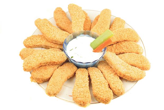Pileće grudi isecite na štapiće i ostavite da odstoje oko pola sata u malo ulja. Posolite ih i pobiberite. Ulje dobro zagrejte, a štapiće uvaljajte u brašno, jaja i izmrvljeni kornfleks (kukuruzne pahuljice). Tako pripremljene štapiće pržite u tiganju od tri do pet minuta, u zavisnosti od debljine.