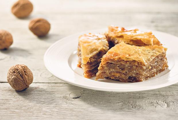 4. Baklava zatim ide u rernu: prvo desetak minuta na 190 stepeni dok ne dobije svetlo smeđu boju, a onda je 45 minuta peći na 150 stepeni. Ako vam se učini da će biti pretamna, pokrijte je aluminijskom folijom i nastavite da je pečete.