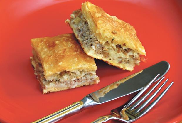 1. Luk iseckati i kratko propržiti na malo ulja. Dodati mu mleveno meso, začiniti po ukusu i dinstati. Za to vreme oguliti i izrendati krompir. Pomešati ga s mesom i lukom, ako je potrebno još malo začiniti. Nakon toga ostaviti da se masa malo prohladi.