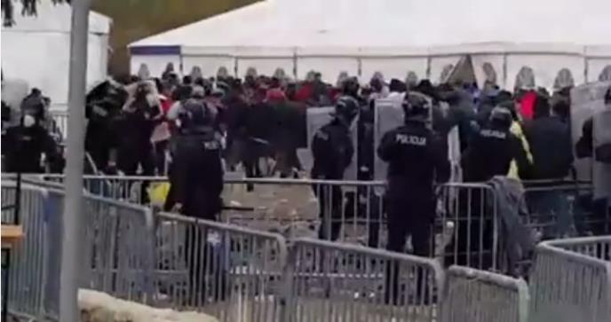DOBOVA - U slovenačkom gradu Dobova sukobili su se policija i bliskoistočne izbeglice, a snimak je objavljen na stranici Fejsbuku koja okuplja volontere.