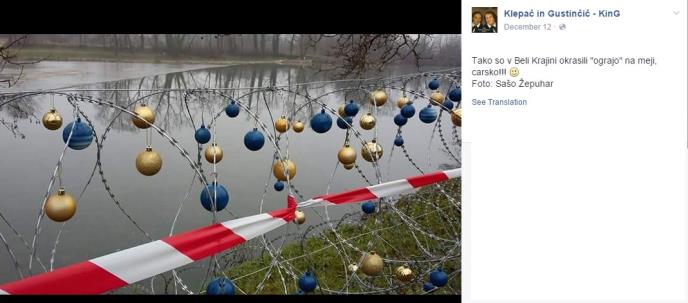 Bela Krajina okačili ukrasne kugle za jelku. Radi se o ogradi koja se nalazi na granici sa Hrvatskom a uz fotografiju ostavili su i prigodan komentar.