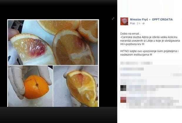 Internetom se već neko vreme širi vest o voću koje je zaraženo virusom HIV. Navodno je reč o pomorandžama koje su, kako je objavljeno na Fejsbuku stigle iz Libije, a otkrili su ih carinski službenici Alžira.