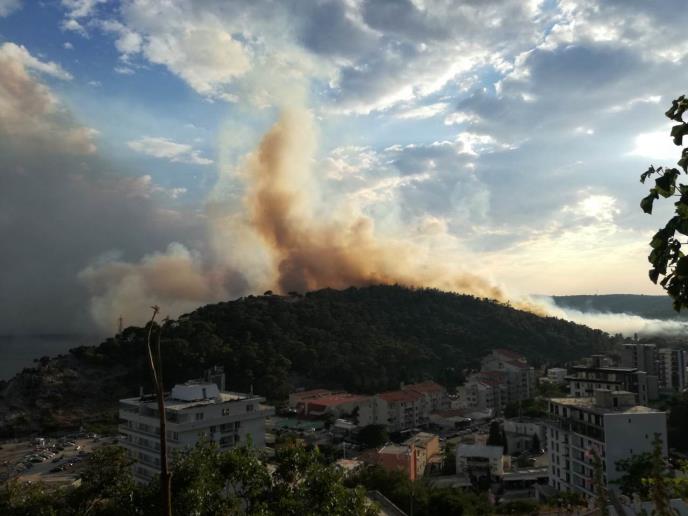 U Sutomoru, na jugu Crne Gore, bukti veliki požar koji se širi velikom brzinom uz pomoć jakog vetra, a vatra je zahvatila borovu šumu na Golom brdu, i preti da zahvati crkvu Svete Petke i obližnje kuće.